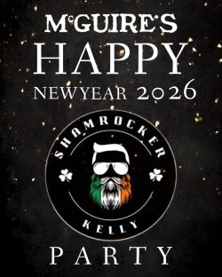 Celebrate New Year’s Eve the McGuire’s way with live Irish tunes, festive cheer, and classic pub vibes. Enjoy Shamrocker Kelly playing crowd favorites, a complimentary champagne toast at midnight, and a gift card raffle with chances to win up to $500. With no cover charge and a lively atmosphere that keeps the celebration going past midnight, McGuire’s offers a fun, laid-back way to welcome the New Year surrounded by great music and good company!