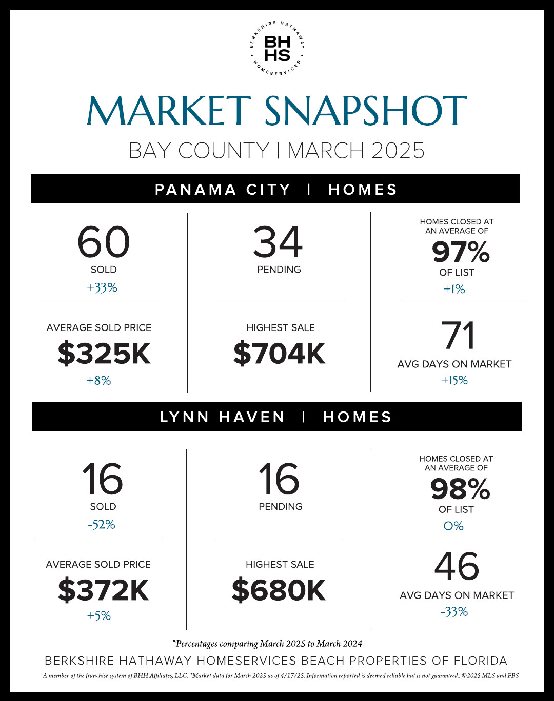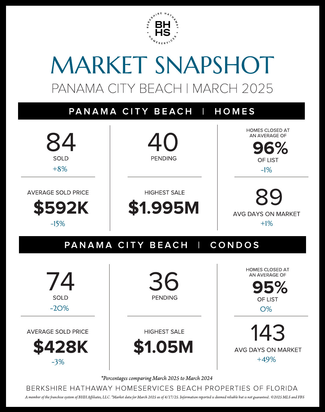 Sales continued to rise in the Panama City Beach real estate market during March while pending properties fell slightly with 158 properties closed for homes and condominiums combined and 76 new contracts secured. In Panama City, 60 homes sold and 34 new contracts were recorded while in Lynn Haven, 16 homes sold with 16 properties place under contract. Berkshire Hathaway HomeServices Beach Properties of Florida earned over $6.6 million with 11 transaction sides in Panama City Beach and over $7.2 million across Bay County during March.