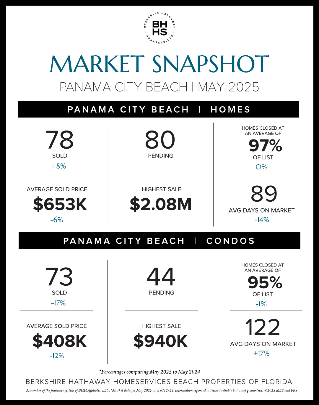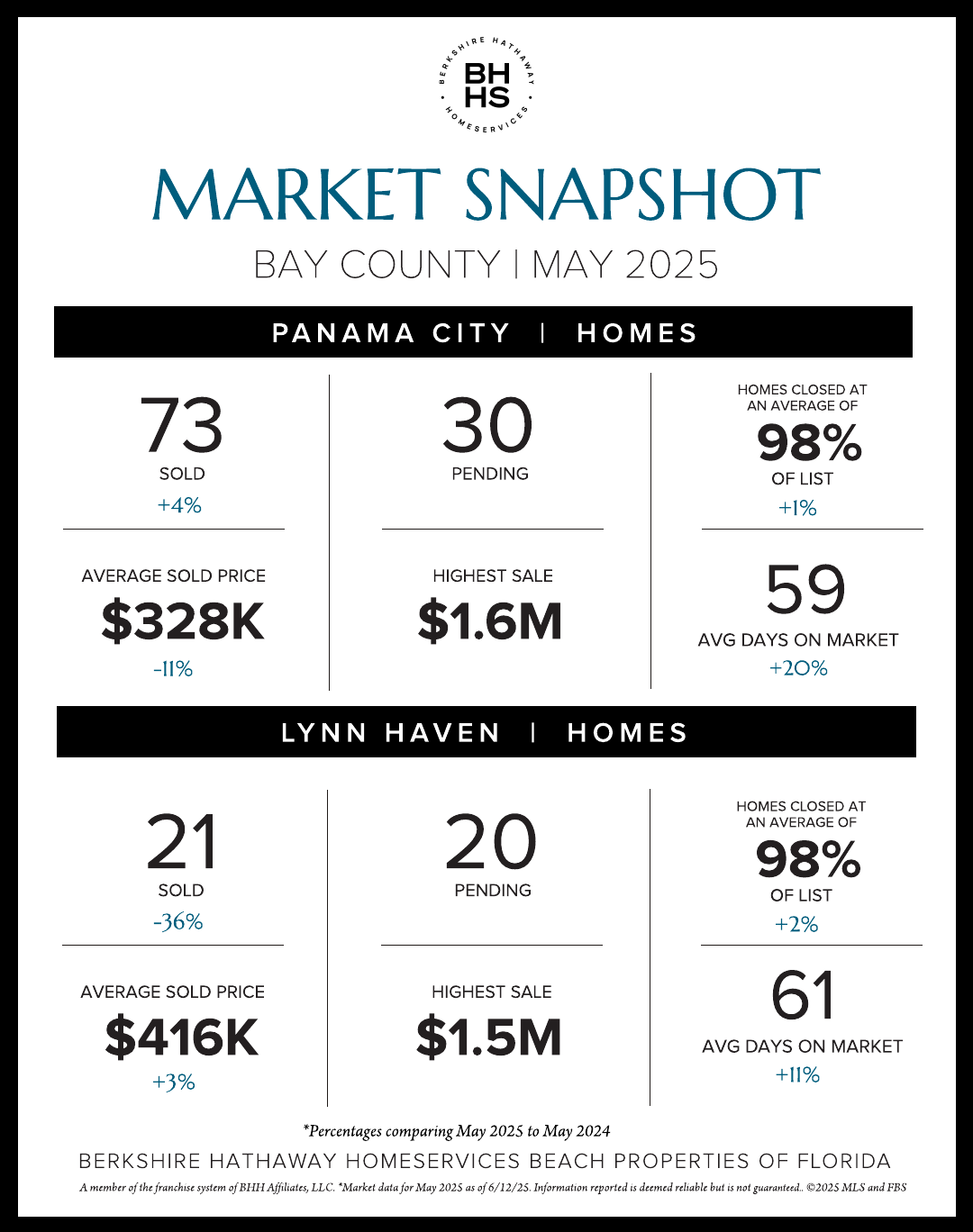 Sales were on the rise in the Panama City Beach real estate market during May with 151 homes and condominiums closed and 124 new contracts secured. In Panama City, 73 homes sold and 30 new contracts were recorded while in Lynn Haven, 21 homes sold with 20 properties placed under contract. Berkshire Hathaway HomeServices Beach Properties of Florida earned over $6.8 million with 9 transaction sides in Panama City Beach and over $7.5 million across Bay County during May.